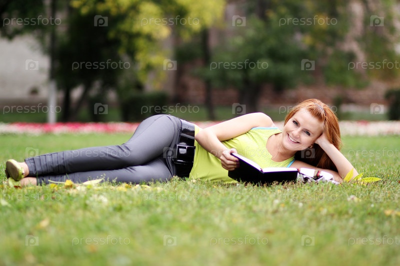 Женщина на полянке читает книгу