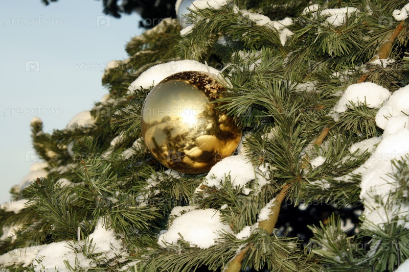 Золотой шар на зимней елке
