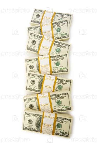 Куча долларов на белом фоне