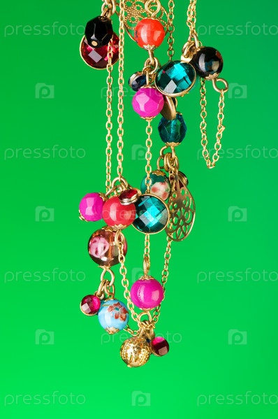 Красивая цветная подвеска на зеленом фоне