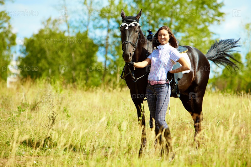 Девушка с лошадью в поле