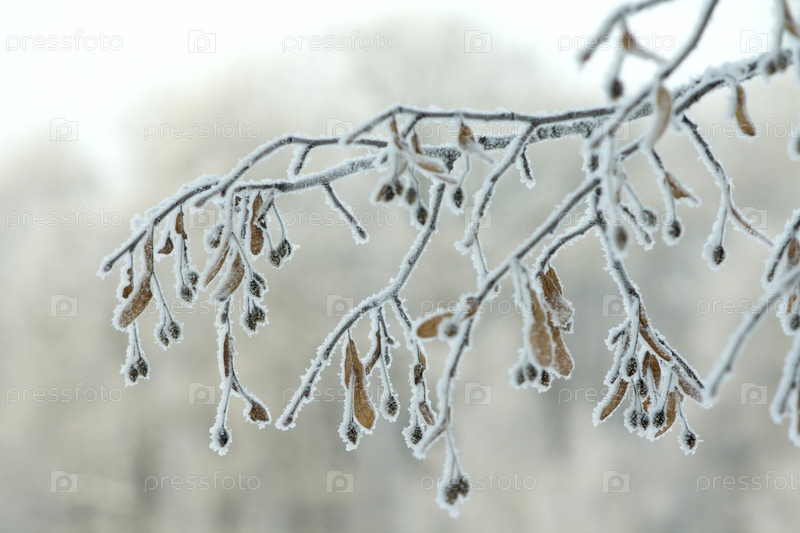 Ветка в инее крупным планом