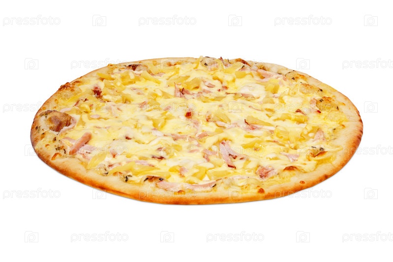 Гавайская пицца на белом фоне