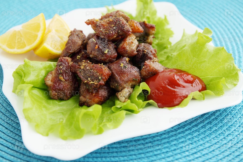 Мясо с соусом и лимоном