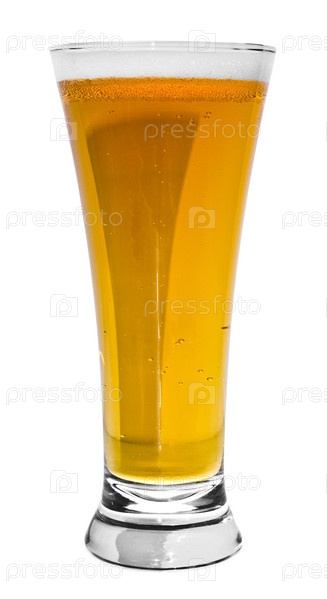 Бокал пива на белом фоне