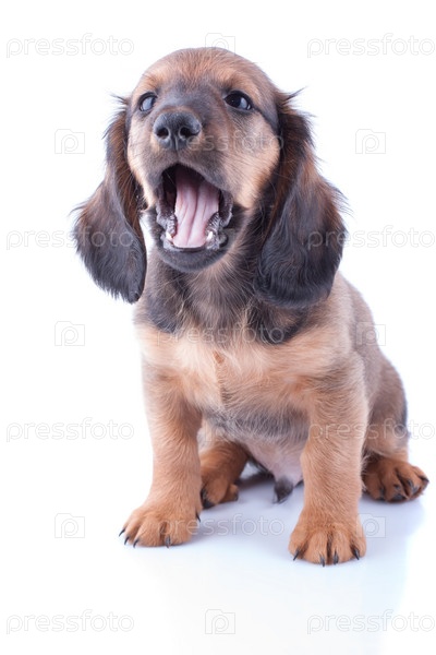 Маленький щенок таксы на белом фоне
