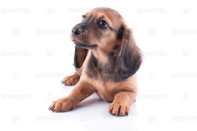 Маленький щенок таксы на белом фоне