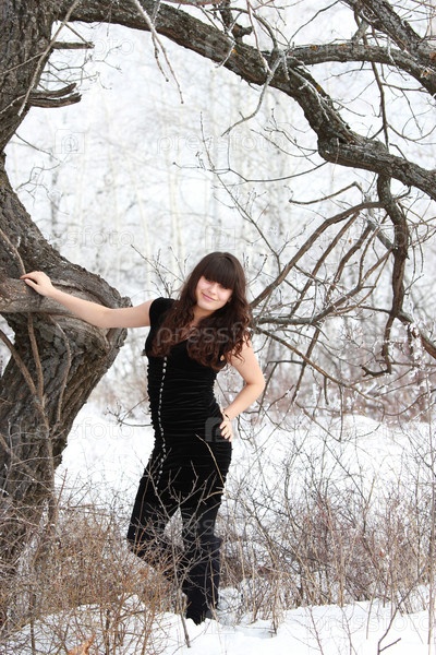 Красивая девушка в зимнем лесу