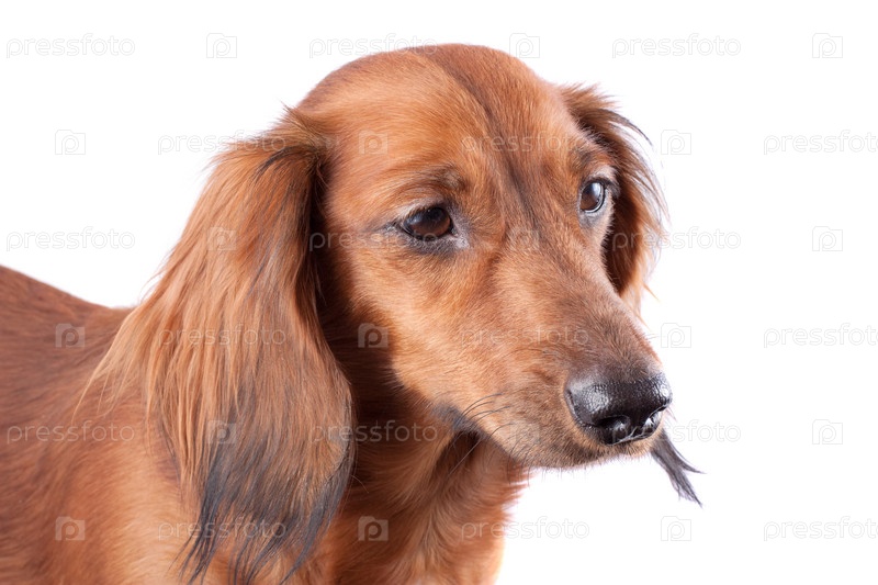 Коричневая такса на белом фоне