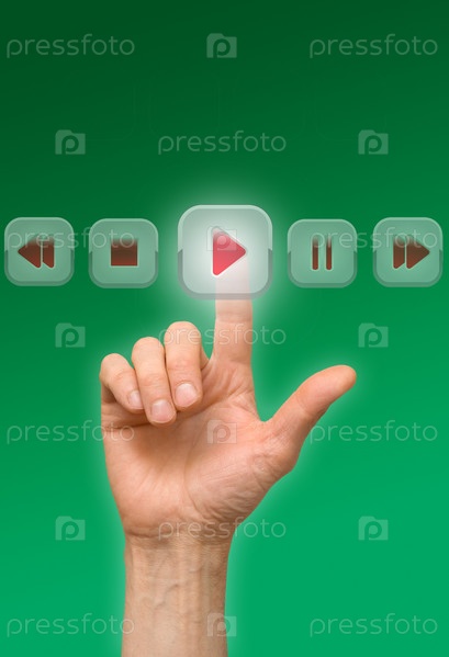 Рука нажимает на кнопку, сенсорный экран