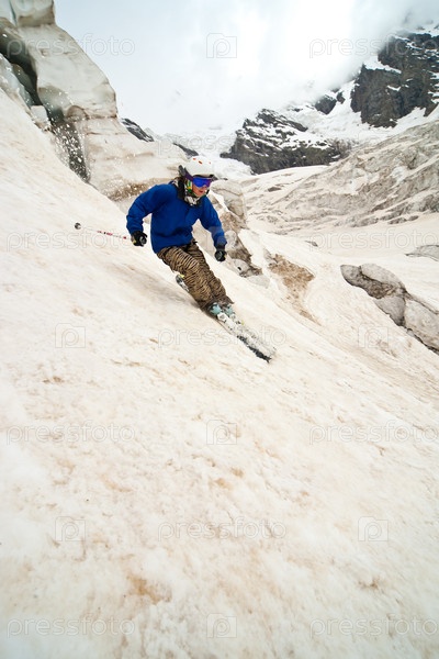 Фрирайдер-женщина на склоне