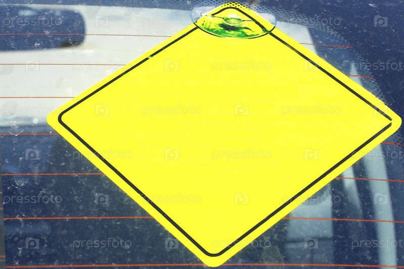 Желтый знак на заднем стекле автомобиля