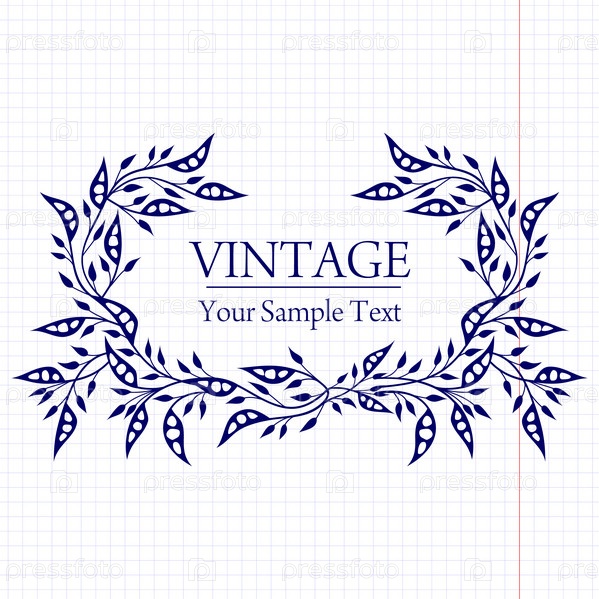 Растительный орнамент на фоне тетрадного листа, шаблон
