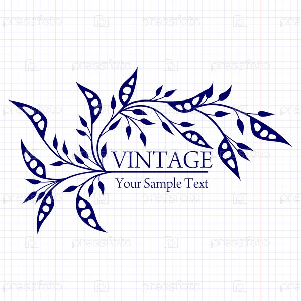 Растительный орнамент на фоне тетрадного листа, шаблон