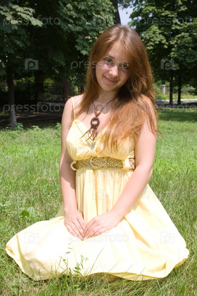 Привлекательная девушка на зеленой траве