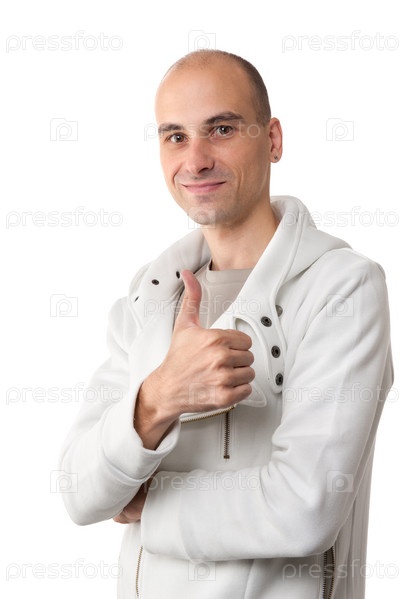 Счастливый молодой человек на белом фоне