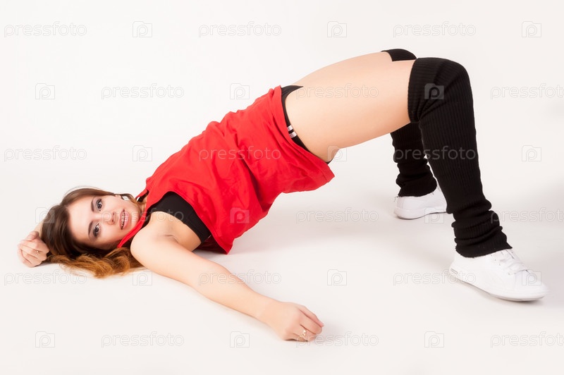 Счастливая девушка делает спортивные упражнения