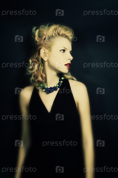 Портрет стильной молодой блондинки на черном фоне