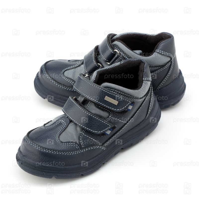 Детские кожаные ботинки на белом фоне