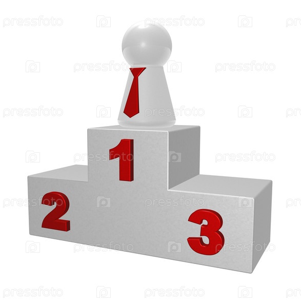 Человек в галстуке на пьедестале на белом фоне, 3d иллюстрация