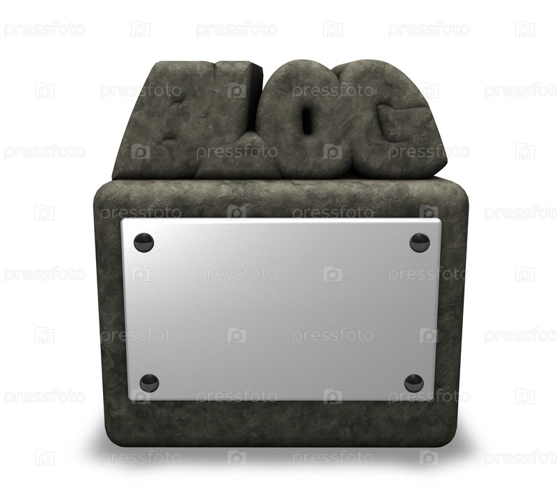 Каменная надпись блог на постаменте с пустой табличкой. 3d иллюстрация