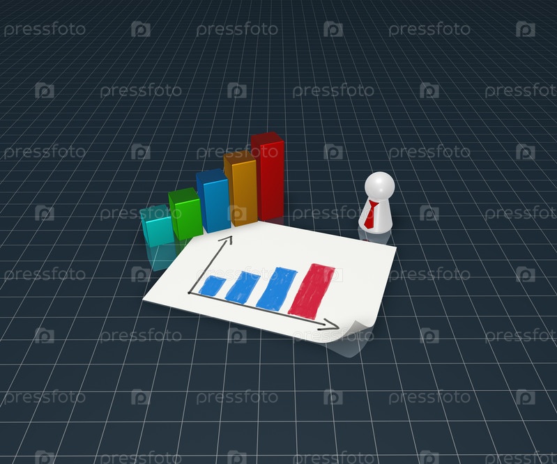 График и человечек в галстуке. 3D иллюстрация