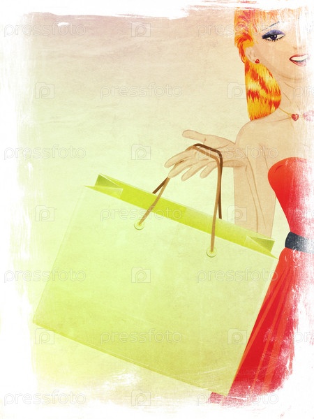 Девушка с рыжими волосами и покупками