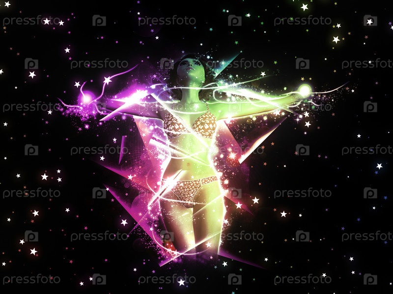 Девушка в бикини на звездном фоне