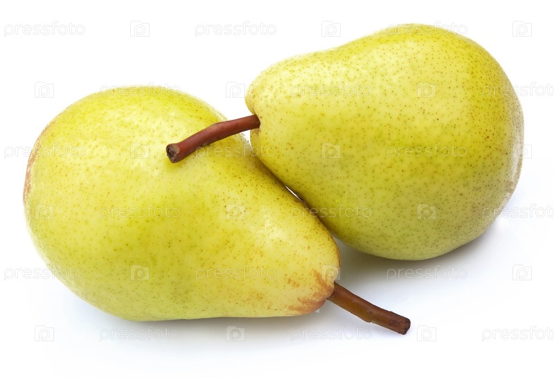 Два спелые, сочные груши на белом фоне