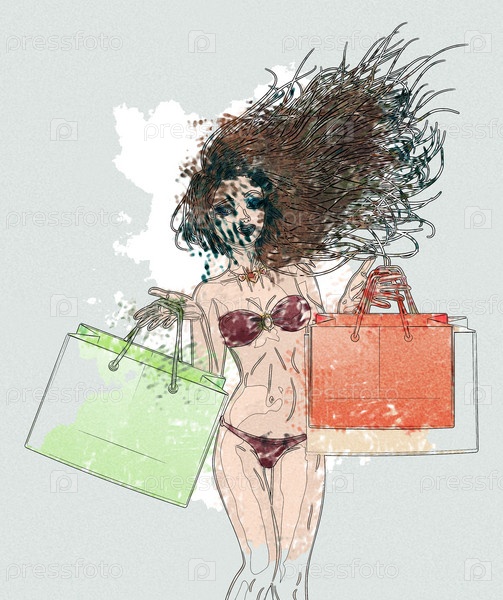 Девушка в бикини с покупками