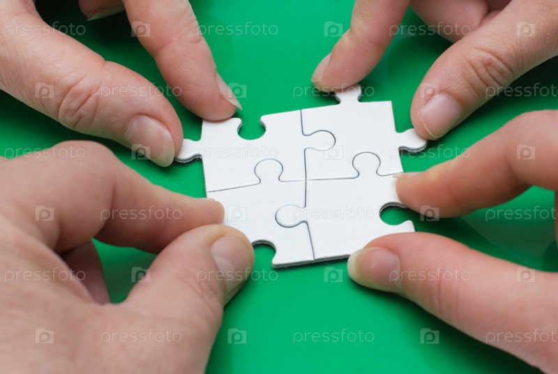 Четыре человека с пазлами