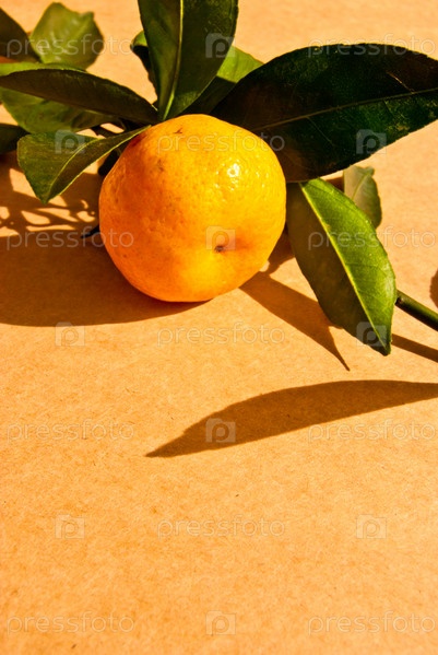 Мандарин на ветке, изолированный на бежевом фоне
