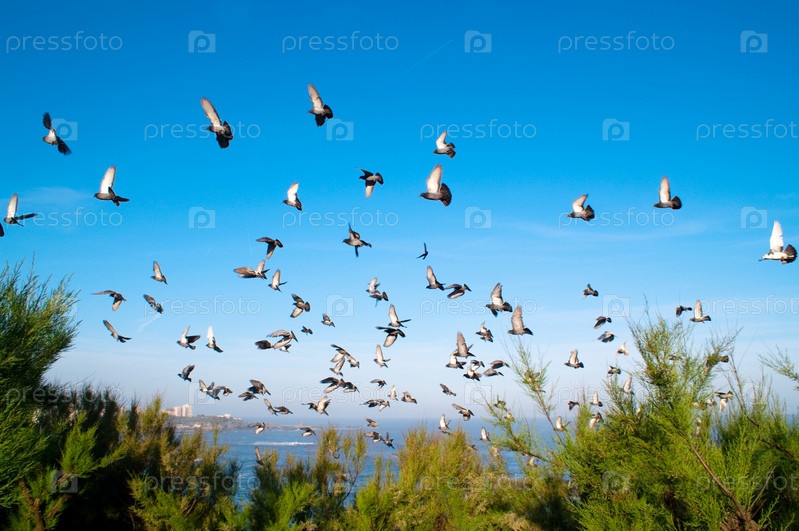 Голуби на голубом небе