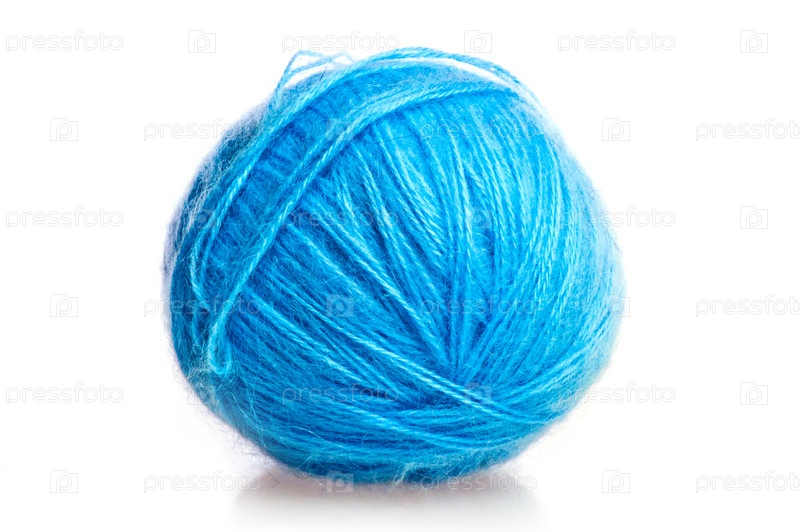 Синий клубок шерсти на белом фоне