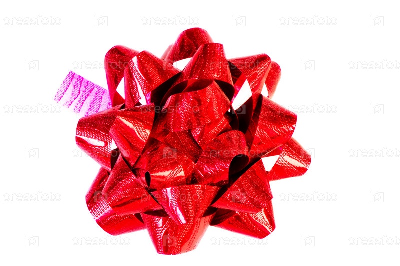 Декоративный красный бант на белом фоне
