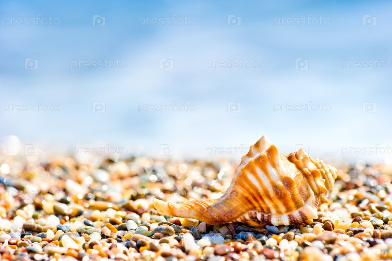 Ракушка на галечном пляже на берегу моря