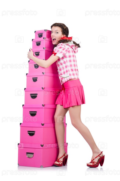 Молодая женщина с коробками для хранения на белом