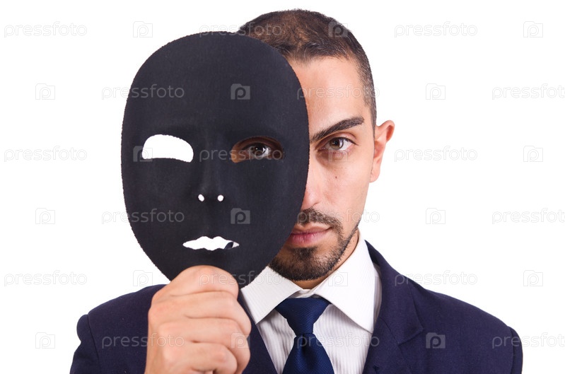 Человек с маской, изолированный на белом