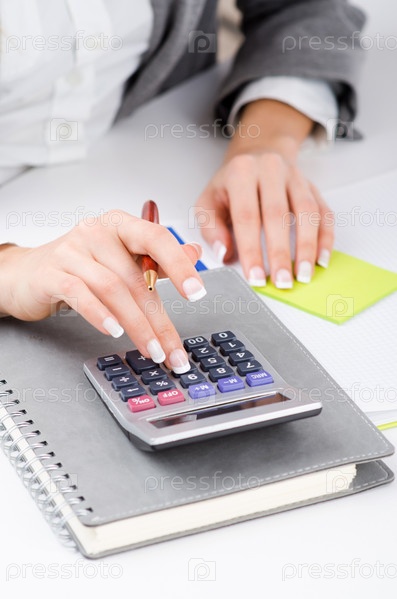 Руки, работающие на калькуляторе