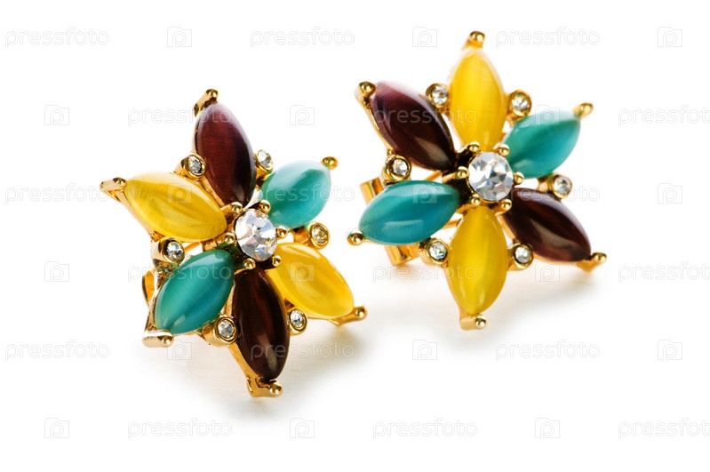 Красивые сережки на белом фоне