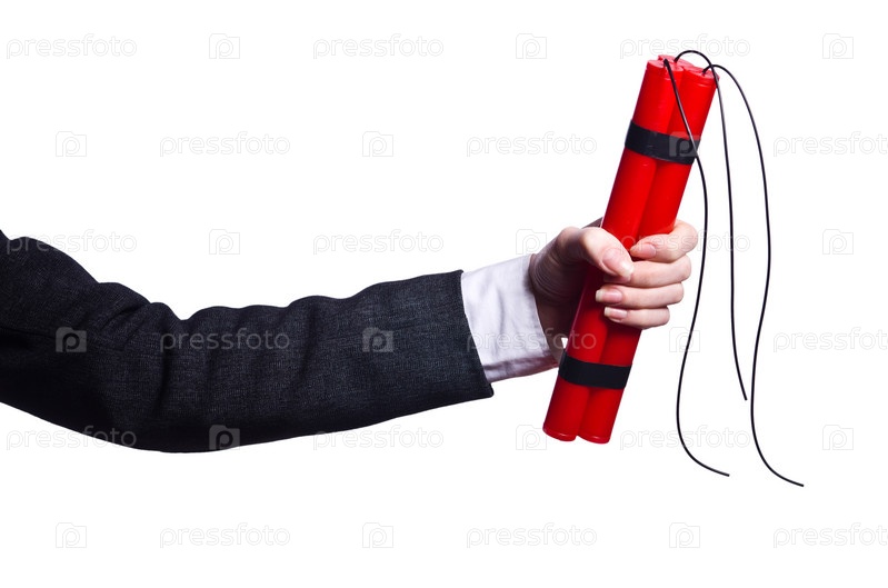 Рука с динамитными шашками на белом фоне