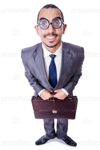 Смешной бизнесмен-ботаник, изолированный на белом