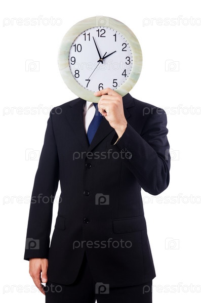 Человек с часами, изолированный на белом