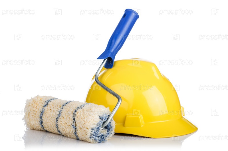 Каска и валик, изолированные на белом