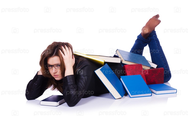 Молодая студентка, изолированная на белом фоне