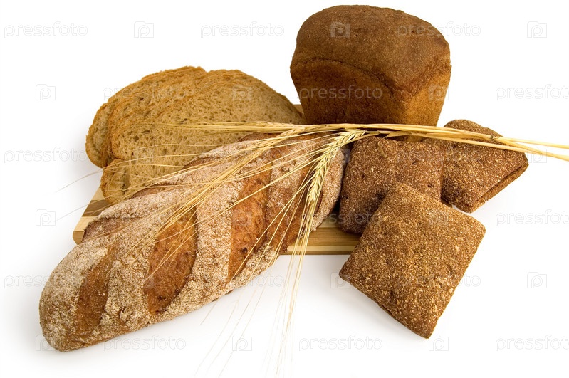 Разнообразный ржаной хлеб на деревянной доске со стеблями ржи