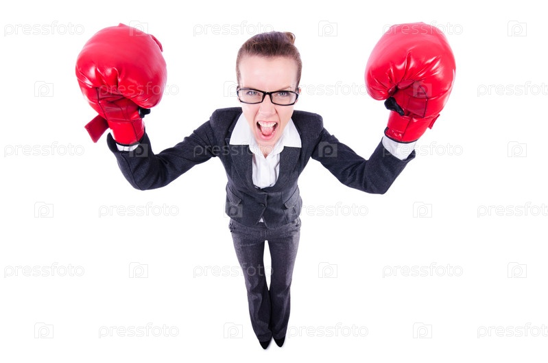Женщина в боксерских перчатках на белом фоне