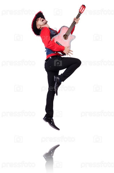 Гитарист, изолированный на белом фоне