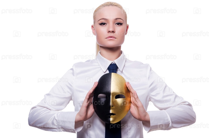 Женщина с маской в концепции лицемерия