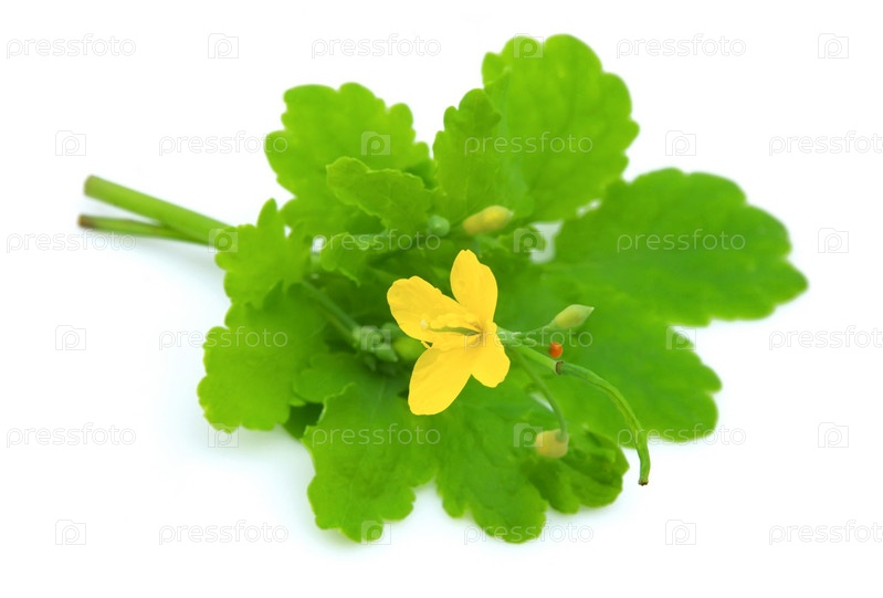 Чистотел на белом фоне